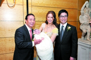 千億新抱徐子淇與丈夫李家誠的次女李晞兒前日滿3個月大,下午先舉行“ Secret Garden”兒童茶會,晚間又舉行豪華百日宴,估計花費約300萬元。雖然不及姐姐晞彤當初連擺兩晚的800萬元“發實宴”,但同樣深受寵愛。