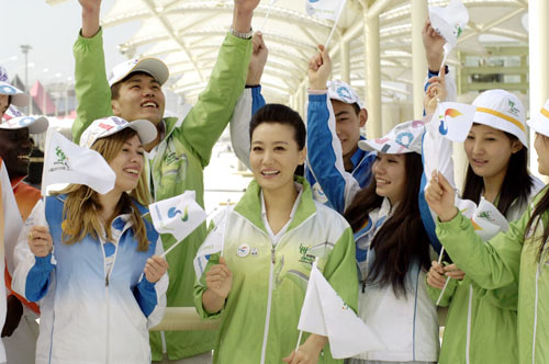 中新網3月22日電 上周,由王平久作詞、何沐陽作曲、譚晶演唱的歌曲《世界》當選為世博會志愿者主題歌。周中,世博會志愿者宣傳大使譚晶親臨上海,與眾多志愿者一起進行了歌曲《世界》的MV拍攝,宣傳世博志愿精神。