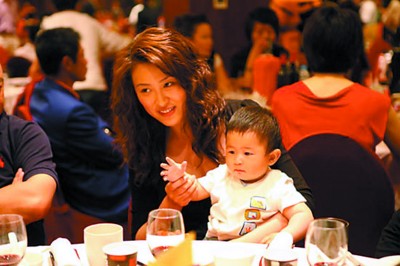 由于晚會當天安排了晚宴,近百位明星藝人將晚會現場塞得滿滿當當,加上媒體的攝像機,要在現場走動頗有幾分難度。但坐在主桌的王志文卻頻頻向隔壁桌示意,記者追隨過去,意外發現了王志文的太太陳堅紅手里抱著一個一歲不到的孩子。經證實,這個9個月大的孩子正是兩人的愛情結晶。與之前相比,孩子長大了不少,一雙小眼睛更是像極了父親王志文。只見小朋友面對記者的鏡頭并不見半點緊張,大有父親般的明星派頭,不僅任由拍攝,還時不時拿起手中的塑料玩具,和媽媽逗趣玩耍。而一頭中長燙發的陳堅紅依舊年輕漂亮,皮膚白皙,看到記者的鏡頭,陳堅紅也沒有表示抗拒,只是專心地和孩子玩耍。