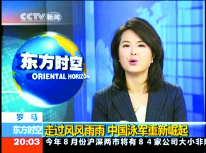 有意思的是,在進行游泳世錦賽的報道時,當張泉靈談到張琳時,屏幕左上角就立刻出現一個畫筆,動態地描摹出張琳的彩色鉛筆畫,增添了喜感,讓人感覺尤為輕松。另外,主播語言“家常化”也是一個很明顯特點。
