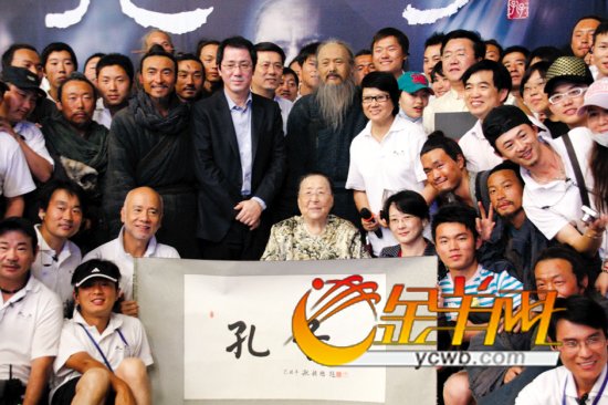 嚴謹?shù)目桌嫌谩爸芡尽眮矸Q呼周潤發(fā),引起現(xiàn)場一片善意的笑聲。孔老還表示自己看過“周同志”之前的很多電影,是他的影迷,因此當(dāng)初知道是由周潤發(fā)來扮演孔子,她就松了口氣。這次親臨現(xiàn)場看周潤發(fā)演戲,更覺得他演的孔子形神兼?zhèn)洌踔帘茸约寒?dāng)初想像的更加出色。她跟周潤發(fā)反復(fù)強調(diào):“讓你來演孔子,是不會錯的!” 但沒能見到扮演南子的周迅和扮演孔妻的張凱麗,孔老略表遺憾。