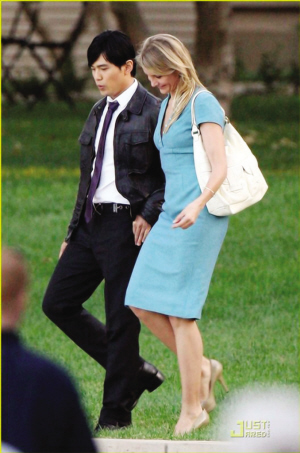千呼萬(wàn)喚始出來(lái)的《青蜂俠》于2009年9月5日在加州正式開(kāi)機(jī),在第一天的拍攝中,周杰倫和卡梅隆·迪亞茲有一段簡(jiǎn)單的感情戲,拍攝時(shí)周杰倫敏捷身手,扶起險(xiǎn)些跌倒的卡梅隆,上演了一出現(xiàn)實(shí)中的“英雄救美”。