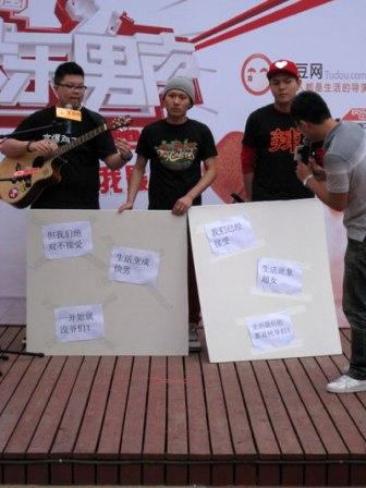 今年快男注定與眾不同,不僅“偽娘”選手備受關(guān)注,而且連“反偽娘”選手也不失風采,上周快男土豆網(wǎng)分賽區(qū)一組特殊選手C-BLOCK組合因在比賽現(xiàn)場打出 “保護純爺們 消滅偽娘族”的參賽口號,而備受網(wǎng)友關(guān)注并被封為“反偽娘斗士”,而有關(guān)這場“偽娘”與“反偽娘”的對決,昨日舞美師在博客爆出猛料:“著姐入圍前三甲不是問題,首先是因為吸引眼球的需要,這也是湖南衛(wèi)視選秀常用手段;不僅如此,劉著也已經(jīng)秘密簽約湖南衛(wèi)視旗下長沙天娛公司”。而針對舞美師的爆料內(nèi)容,記者也從網(wǎng)上了解到該組合相關(guān)資料,首先該C-BLOCK組合來自長沙,在當?shù)匾恢毙∮忻麣猓瑢嵙Σ凰祝ツ甓啻螀⒓雍闲l(wèi)視王牌節(jié)目《快樂大本營》、《成年禮》、《8090》等節(jié)目,而關(guān)于“偽娘”劉著網(wǎng)上開始有人爆出其與湖南衛(wèi)視關(guān)系甚密,這些相關(guān)信息與舞美師爆料內(nèi)容十分契合。為進一步求證舞美師的爆料內(nèi)容,記者向湖南衛(wèi)視快男導(dǎo)演組一編導(dǎo)求證,他表示:“不要相信舞美師博客內(nèi)容,純屬造謠,快男比賽保證公平選拔”。 張 漪