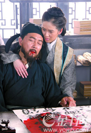 經(jīng)過兩個多月的拍攝,我國首部書法題材的大型電視連續(xù)劇《大唐書魂顏真卿》重頭戲粉墨登場。唐國強(qiáng)在其中飾演書法巨匠顏真卿,被媒體稱為“中國式美女”的年輕女演員趙柯則飾演其結(jié)發(fā)妻子韋蕓。兩人表演時情真意切,儼然一對“老夫老妻”。
