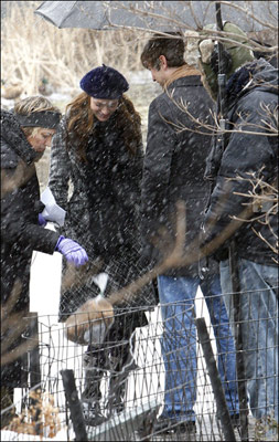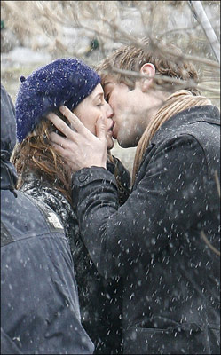 《緋聞女孩》最新一集正在美國的如火如荼的拍攝中,小編昨天帶大家看了布萊克·萊弗利的時尚片場照,今天帶大家來領略浪漫片場嘍,切斯·克勞福在風雪中熱吻莉頓·梅斯特,冰天雪地中的一吻,相信這集會很有看頭。