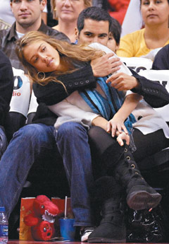 中新網11月20日電 好萊塢新一代性感女星潔西卡·阿爾巴(Jessica Alba)跑去多倫多看NBA籃球賽,不知是看得太累了,還是愛得太濃了,竟然趴在制片男友凱許·華倫(Cash Warren)的大腿上。