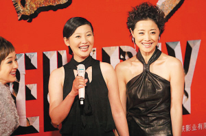 葛優(yōu)看著三位“女友”,模仿起影片的口吻來:“十年了,我很懷念她”。雖未指明是哪個(gè)“她”,但老搭檔劉蓓顯得非常開心,搶先回應(yīng)道:“很開心成為馮小剛第一部賀歲片的女主角”。而徐帆更是激動得熱淚盈眶:“因?yàn)橛辛速R歲片,讓觀眾開始愛看電影了,觀眾和電影演員之間的距離更近了。”至于站在一旁的范冰冰,延續(xù)了紅毯上的“無厘頭”發(fā)言,她曖昧地看了看葛優(yōu),笑著說:“我將青春獻(xiàn)給了你。”主持人吳佩慈接過話茬追問范冰冰:“你把青春獻(xiàn)給了誰?”范冰冰尷尬一笑,連忙解釋道:“說實(shí)在的,我們這些演員都把青春獻(xiàn)給了電影,希望觀眾支持中國電影”。薛姣