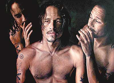 希斯•萊杰生前與好友Vincent Fantauzzo計劃打造一幅自己的肖像。據后者透露,在這幅由他完成、取名為“希斯”的肖像畫中,中間占主導地位的“希斯•萊杰”面目茫然,旁邊兩個“希斯•萊杰”正在他耳邊低語。(張明天)