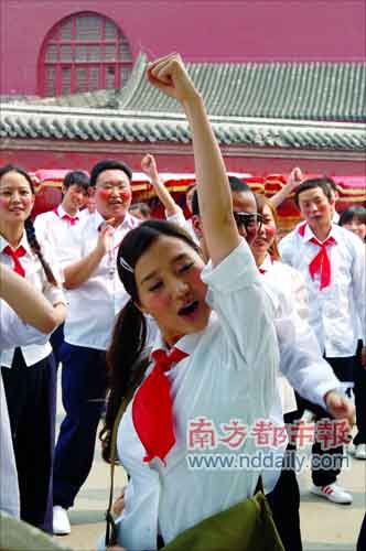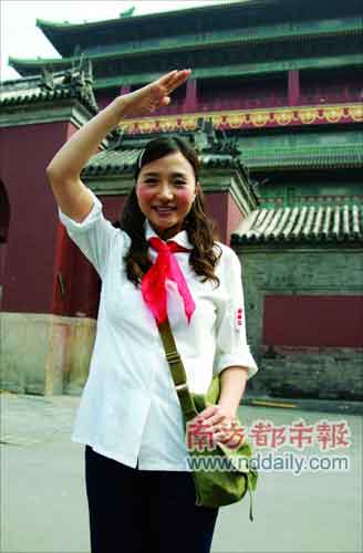 白襯衣、紅領(lǐng)巾、黃書包……6月15日下午,阿朵現(xiàn)身北京鼓樓大街胡同,為新歌《啦啦隊歌》拍攝MV。這首收錄于她新專輯的歌曲由阿朵一手包辦詞曲,旨在為08北京奧運搖旗吶喊。拍攝現(xiàn)場,阿朵與同門師弟后舍男生還有工作人員齊上陣,整齊劃一的加油手勢,營造出朝氣蓬勃的氣氛。