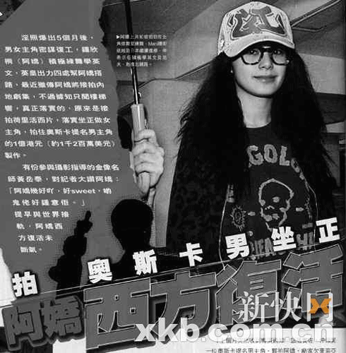 艷照爆出5個月后,照中主角密謀復工。鐘欣桐(阿嬌)積極練舞學英文,英皇出力四處幫阿嬌搭路,最近雖傳阿嬌將接拍內(nèi)地劇集,不過據(jù)知只聞樓梯響,真正落實的,原來是接拍好萊塢西片,阿嬌落實坐正做女主角,聯(lián)同奧斯卡提名男主角,投入1億港元制作,提早與世界影壇接軌。有份參與攝影指導的著名人士攝影師黃岳泰對記者大贊阿嬌:“阿嬌幾好,好sweet,西方人好喜歡她!