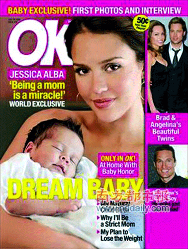 6月7日誕下女兒奧內·瑪麗·沃倫(HonorMarieWarren)的杰西卡·阿爾巴(JessicaAlba),抑制不了150萬美元的“誘惑”,和女兒亮相本周《OK!》雜志封面,同時大談懷孕生產趣事,并自爆懷孕期間完全沒有“性致”。