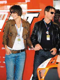 中新網7月22日電 湯姆·克魯斯與妻子凱蒂·赫爾姆斯在把寶貝女兒蘇蕊暫時交給外祖母之后,兩人在20日來到加州的Laguna Seca車場觀賞美國機車大賽(Moto Grand Prix)。只見兩人均戴上墨鏡、穿上皮夾克,顯得酷勁十足。