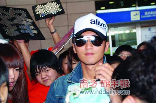 8月9日,謝霆鋒忙完北京的活動,馬不停蹄地趕到上海,為奧運錄制節(jié)目。機場大批歌迷守候,謝霆鋒頭戴alive棒球帽,大墨鏡加上一身的牛仔服,顯得十分引人注目,一出現(xiàn)就吸引了大批粉絲圍上前。