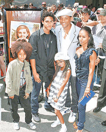 當?shù)貢r間六月三十日晚,索尼電影公司出品的喜劇動作片《全民超人》(Hancock)在好萊塢中國劇場舉行盛大首映式,明星紅地毯走秀規(guī)模堪比奧斯卡頒獎禮。圖為《全民超人》男主角漢考克的扮演者好萊塢著名影星威爾·史密斯(Will Smith)與妻子賈達·萍克·史密斯一起出席首映禮。 中新社發(fā) 張煒 攝