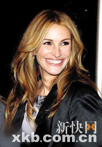 羅伯茨出席新片首映露鬢角白發 大嘴夸張爆笑(圖)
