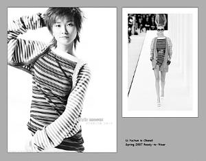 最近,“玉米”們很費心思地做了一系列圖片,主題是他們家春春穿著各大名牌的衣服和模特的對比圖。結果我們發現,李宇春真的能把許多衣服穿出自己的感覺,并且不僅僅是中性。想象一下李宇春穿香奈兒套裝會是什么樣子?模特走秀時穿的這系列成衣都是香奈兒家典型的纖細優雅風,而同樣的衣服穿在李宇春身上,則多了幾分青蔥少年的特質。看看其他的照片,我們可以發現除了像香奈兒和GUCCI等大牌成衣,最近幾年流行的Y-3和Comme des Gargons等潮牌也是她的最愛,除此之外還有稍微平價些的牌子,比如Diesel和Miss sixty,雖然玉米們的意思是為了證明李宇春穿得比模特好看,但是效果卻是絲毫沒有可比性,因為李宇春的造型師真的是用衣服在襯托明星,而不是讓衣服穿人。