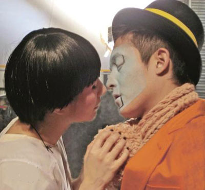陳冠希變身白臉布偶,任由超儀擺布。香港明報圖。