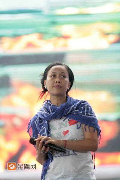 下午2點40分,三人同臺演唱了奧運歌曲《同一個世界 同一個夢想》,并與領舞成員進行了溝通交流。(馮紫劍)