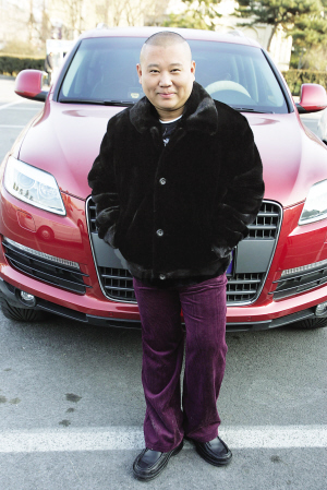 昨日郭德綱一身貂皮大衣來到現場,身材也明顯發福,記者開玩笑問郭德綱收入是否比去年翻倍,他再次搬出老婆來護駕“我的錢都歸媳婦管了,我對錢真沒什么概念!辈贿^發布會結束時記者們發現,郭德綱的車由30多萬的克萊斯勒300C換成了90多萬的奧迪Q7,看到記者們圍過來,郭德綱也十分大方地站在自己心愛的座駕前留影、擺POSE。