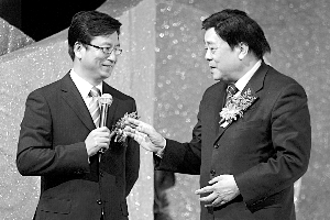 當晚獲獎的播音主持人當中,僅崔永元因在云南制作節目沒有到場。主持人通過電話連線了遠在云南的崔永元。他笑稱,“因為在場的都是我的老師,只有白巖松是我的徒弟,所以他替我領獎吧!倍宜“欽點”趙忠祥為他頒獎。(記者解宏乾)