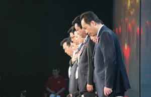 李谷一、楊洪基等高歌《我們眾志成城》;陳道明、唐國強(qiáng)等朗誦《我們與你同在》;戲曲界高歌《我是中國人》;體育界同唱《真心英雄》;港臺明星謝霆鋒、容祖兒、周華健為同胞加油,企盼《明天會更好》;三年未在公開場合亮相的天后王菲,也出現(xiàn)在了昨晚的現(xiàn)場,畢竟久疏舞臺,王菲昨晚并沒發(fā)揮出最佳水平,但她賣力的演出,還是顯示出演藝明星對災(zāi)區(qū)人民的牽掛……