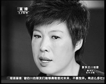 東方衛視請于丹做節目時,她在直播中幾次哭泣。她說:“因為我是為人父母者,失去孩子等于失去了一切。我記得當時看到那些母親們手里拿著留在現場的書包,卻無法看到自己的孩子,他們還被埋在廢墟堆里,那時候我的眼淚就嘩啦啦地下來了!蔽以诓┛屠锸詹剡@張圖片,此時,她不是一位文化學者,她只是一位母親。