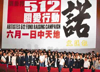 據香港文匯報報到,昨日近兩百余演藝界人士參加了記者會,短短十五分鐘談話便結束,會上先由活動召集人劉德華發言,他先為各界的支持致意,華仔又哽咽地說:“四川大地震發生,演藝界短短時間內發起行動,大家勞心勞力,但這份熱情不是一時三刻,重建需時要三、五、七年,重建災民的生活,是我們的承諾,我特別多謝中聯辦及香港電影發展基金于行動中的協助,以及西九龍中天地六月一日借出場地舉行賑災大匯演,由于時間倉卒,不夠時間向有關政府部門申請,但深信活動會得到大家的響應及支持,寄望天佑四川,天佑中國!