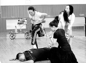 在昨晚的排練中,當寧靜劇中的老公到來后,面對五大三粗的丈夫,她一聲大吼:“快、快、快來幫忙,我老公最怕癢了,你們還愣著干嗎,快來一起制服他。”將女大廚潑辣的一面表現得恰到好處。(記者張寧)