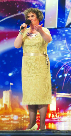 4月11日,沒有接受過任何聲樂訓練的蘇珊走上了舞臺。聚光燈下,當身材肥胖的她告訴現場所有人她的夢想是成為伊蓮·佩姬(英國音樂劇女神)時,包括評委在內的所有人都狂笑不已。但當她一開口之后,眼神立即變得柔情萬種,歌聲中具備了驚人的爆發力與磁性……從那時起,先前的笑聲戛然而止,現場除了掌聲便是尖叫!一曲唱罷,觀眾們紛紛起立熱烈鼓掌,幾個歲數很大的觀眾偷偷用手擦去感動的眼淚。評委之一的西蒙驚訝得張大了嘴巴;評委皮爾斯·摩根更直呼:“現在沒人笑你了,你的表演震撼、無與倫比!而你更是我們這個節目開辦三年來最大的驚喜!”