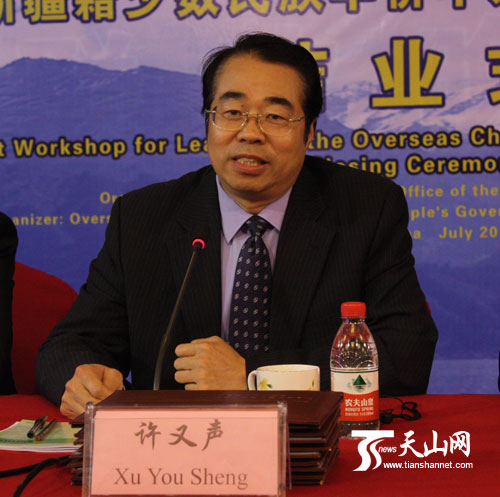 7月24日上午,首期新疆籍少數民族華僑華人社團負責人研習班結業式在烏魯木齊舉行。國僑辦副主任許又聲出席結業式并講話。自治區副主席胡偉出席結業式并致辭。