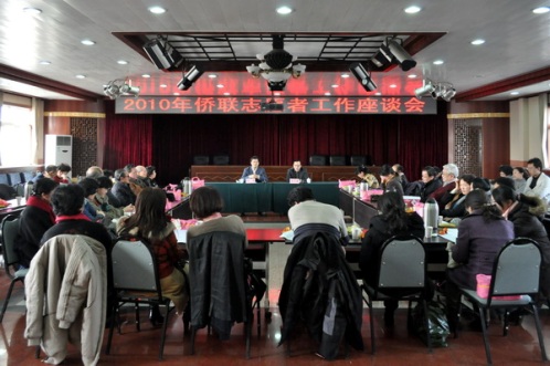中新網2月4日電 據青島市僑聯消息,近日,山東省青島市僑聯召開2010年僑聯志愿者工作座談會。青島市僑聯主席率相關工作人員與50余位僑聯志愿者匯聚一堂,暢談一年來參加志愿服務活動的感受和收獲,為2010年僑聯志愿者工作積極建言獻策。