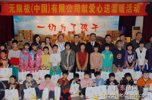 在活動上,廣州市僑辦副主任折志凌受朱爾武委托,代表省市區(qū)僑務部門作了熱情洋溢的致辭。香港李錦記健康產(chǎn)品集團副總裁楊國晉先生代表無限極(中國)有限公司講話,詮釋了公司的慈善理念,介紹了此次活動的緣由和安排,表示將一如既往地履行社會慈善的企業(yè)責任,并向廣州市社會(兒童)福利院贈送價值133萬元的物資。廣州市社會(兒童)福利院徐久院長代表福利院感謝省市區(qū)三級僑辦的關心支持、感謝香港李錦記健康產(chǎn)品集團、無限極(中國)有限公司的慈善關懷,代表孩子們感謝社會各界和慈善人士的關愛!