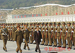 錢其琛檢閱駐澳部隊 作者:王麗南 解放軍駐澳門部隊19日公開亮相,國務(wù)院副總理、澳門特別行政區(qū)籌委會主任委員錢其琛在廣州軍區(qū)司令員陶伯鈞和駐澳部隊司令員劉粵軍陪同下,在駐澳部隊珠海基地檢閱駐澳門部隊儀仗隊。 |