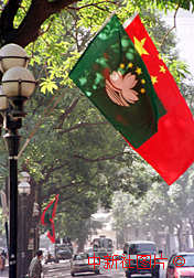 廣州迎澳門回歸氣氛熱烈 作者:李懷德 廣州市一些主要道路兩旁已掛起國旗和澳門特別行政區區旗,喜迎澳門即將回歸祖國。 |