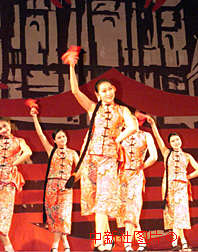 迎澳門回歸晚會在京舉行 作者:滿會喬 喜迎澳門回歸歌舞音樂會十四日在北京人民大會堂舉行。圖為陳愛蓮藝術團的演員在表演舞蹈《大姑娘美》。 |