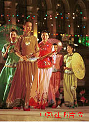 中新社傳真 毛建軍攝 連續兩天在澳門舉行的中國大型服飾表演取得圓滿成功,精英佳麗和華美云裳博得一片喝彩。 |