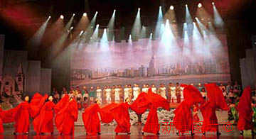 紅衣姑娘在澳門回歸之夜將獻演的慶祝晚會上,歡慶明天紅紅火火更美好。中新社傳真 陳佳攝 |