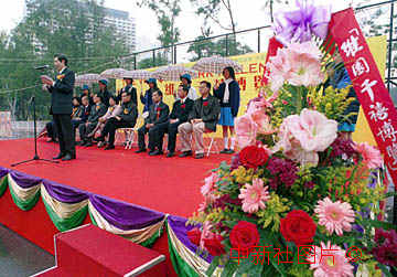 香港工商界十八日在雨中舉行"維園千禧博覽"會的開幕式,以迎接千禧年的到來。中新社傳真楊佐桓攝 |