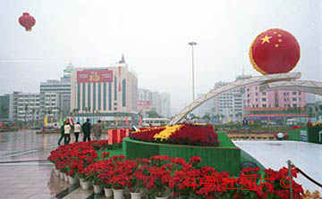 珠海通往澳門的大道裝點(diǎn)鮮花彩景,歡慶澳門回歸和解放軍進(jìn)駐。 中新社傳真 彭振戈攝 |