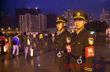 珠海公安部門在拱北口岸成立防暴部隊,全天候值勤保障澳門回歸安全。中新社傳真 王瑤攝 |